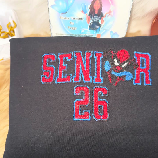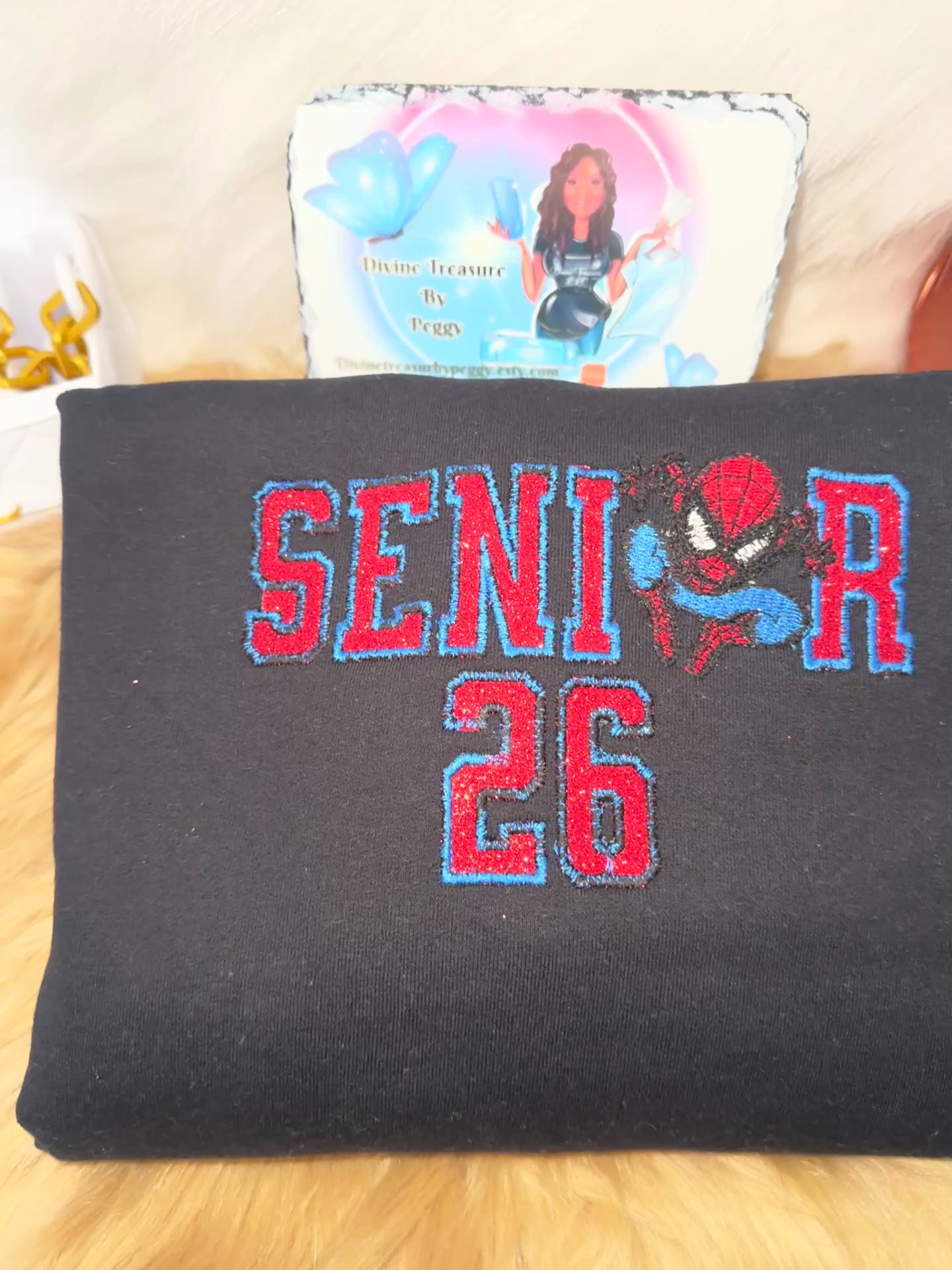 This lovely embroidered sweatshirt is perfect every seniors who superpowers reflects the hero in them. Designed with Spiderman superhero leaping in senior year, shimmering varsity-style “2026” numbers, and bold “SENIOR” embroidery, it makes a thoughtful and fashionable graduation gift for the Class of 2026 🎓